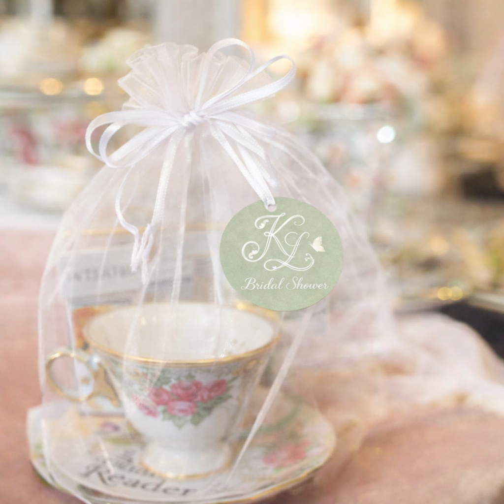 FAVORS - CLIENT TO PROVIDE TEA CUPS PRE BAGED. KAREN TO ATTACH CIRCLE TAG